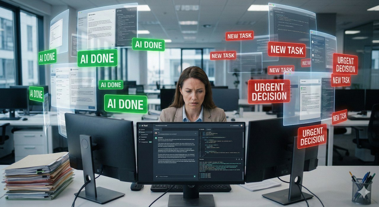 我们并没有因为AI而获得休息。相反,我们正被迫跑得更快,去追赶那台永不疲倦的机器。