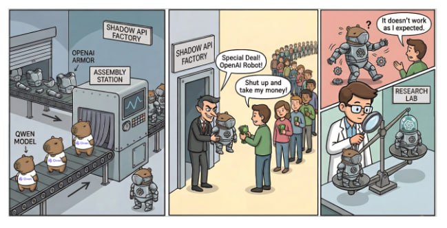 今天,我要给你揭开一个科技界的惊天大瓜——最近一篇名为《真金白银,假冒模型》(Real Money, Fake Models)的硬核论文,彻底解剖了我们这个看似繁荣的中转 API 黑市。它的结论简单粗暴到让人脊背发凉:你以为你用的是 GPT-5 或 Gemini-2.5,但很可能只是一个被替换的“山寨版”模型,不仅性能狂跌,还可能让你变成一个为“假货”付费的超级大冤种! 💰