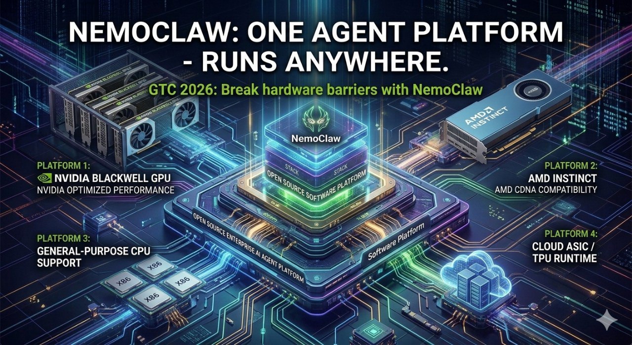 这是最令业界震动的一点。NemoClaw虽然由英伟达开发,但它不锁定英伟达芯片。这意味着,即使你的数据中心跑的是AMD的Instinct显卡,或者谷歌的TPU,甚至是你自家定制的ASIC芯片,你依然可以部署NemoClaw。