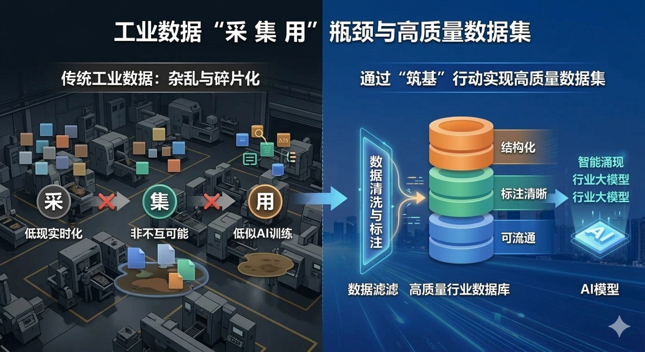 工业数据存在严重的"采不到、集不齐、用不好"瓶颈。此次"筑基行动"的启动,本质上是国家层面在为工业人工智能的"暴力美学"修建炼油厂——将原始、散乱的工业废料转化为高质量的行业数据集。