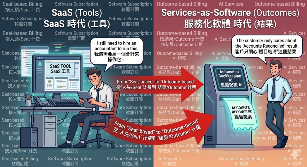 这就是"服务化软件"的核心:不再向客户推销工具的订阅账号,而是直接向客户交付最终的工作成果。