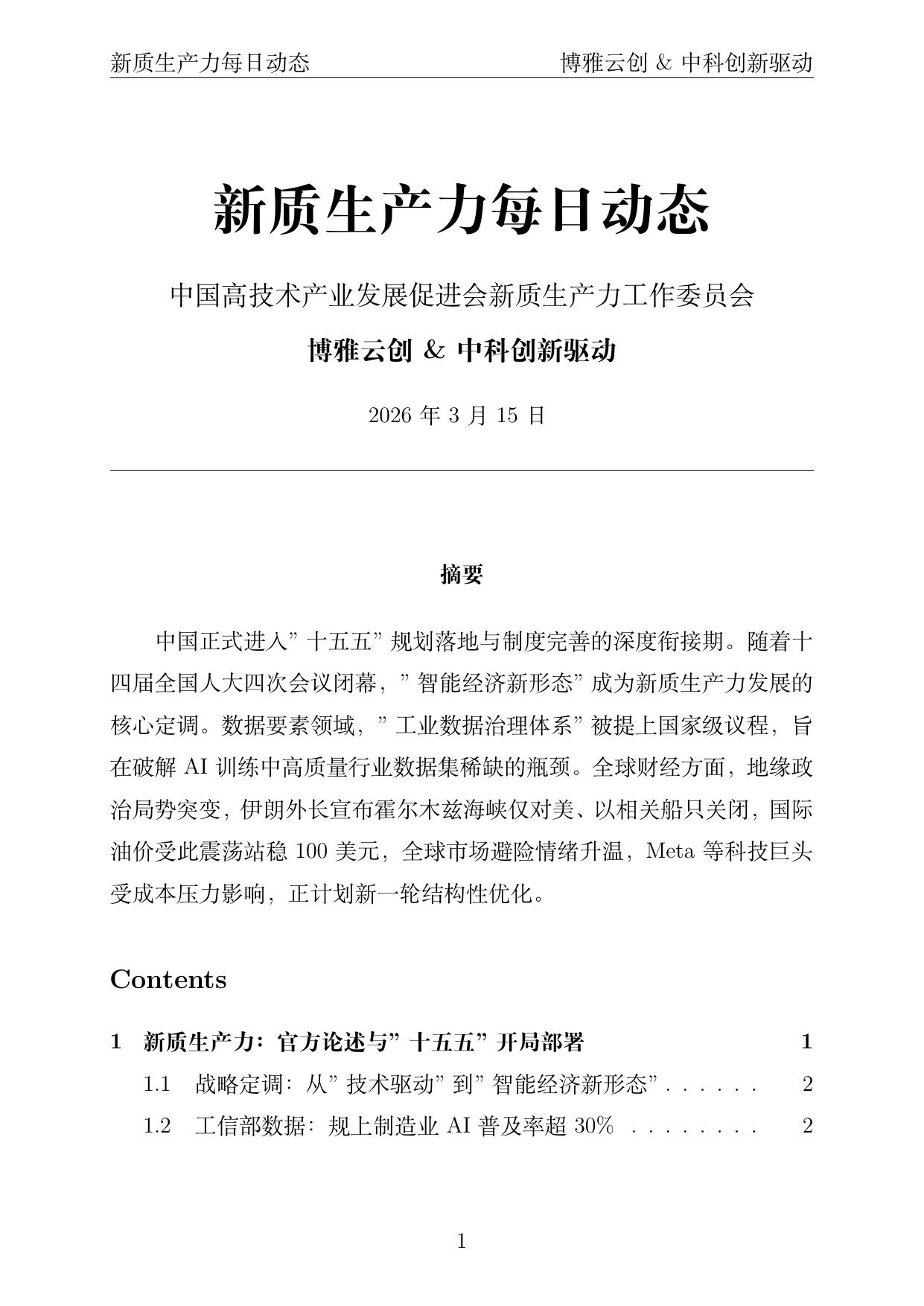 中国高技术产业发展促进会新质生产力工作委员会 | 2026年3月15日