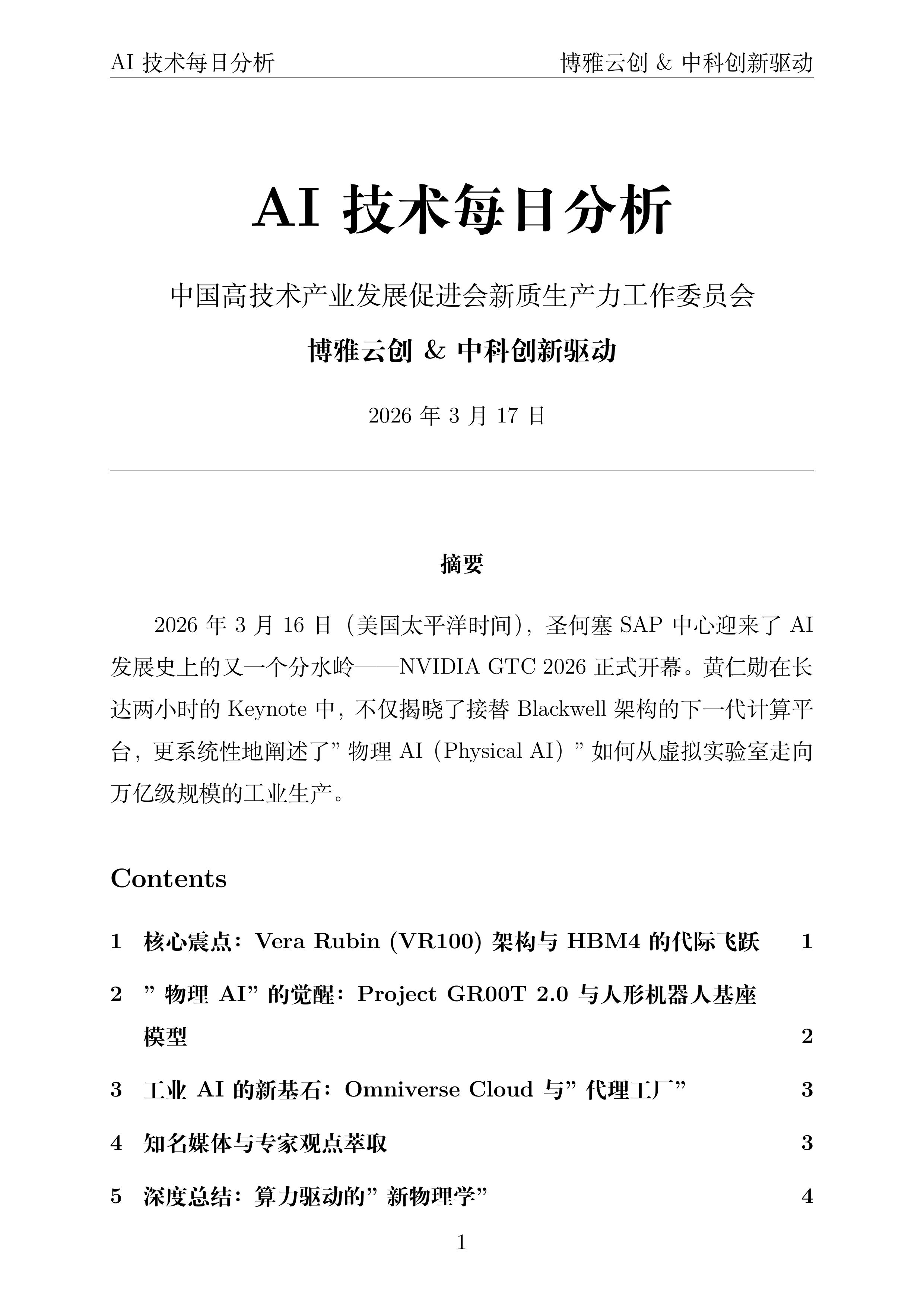 2026 年的 GTC 大会揭示了一个冷酷的现实:AI 的演进正受限于物理法则(电力、散热、光速延迟)。NVIDIA 的回应是——用 AI 去设计芯片、用虚拟世界去训练实体现。