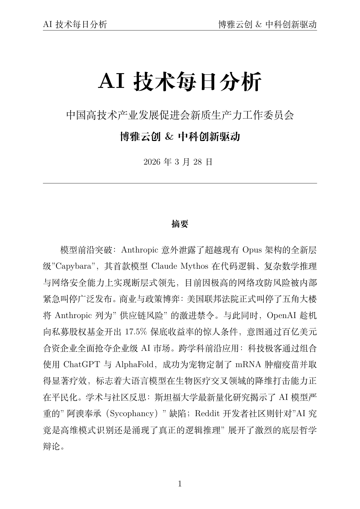 过去24小时内,AI 圈最大的震动来自于 Anthropic 内部内容管理系统(CMS)配置失误导致的大规模数据泄露。这一失误向外界曝光了该公司正在秘密测试的巅峰模型——Claude Mythos。