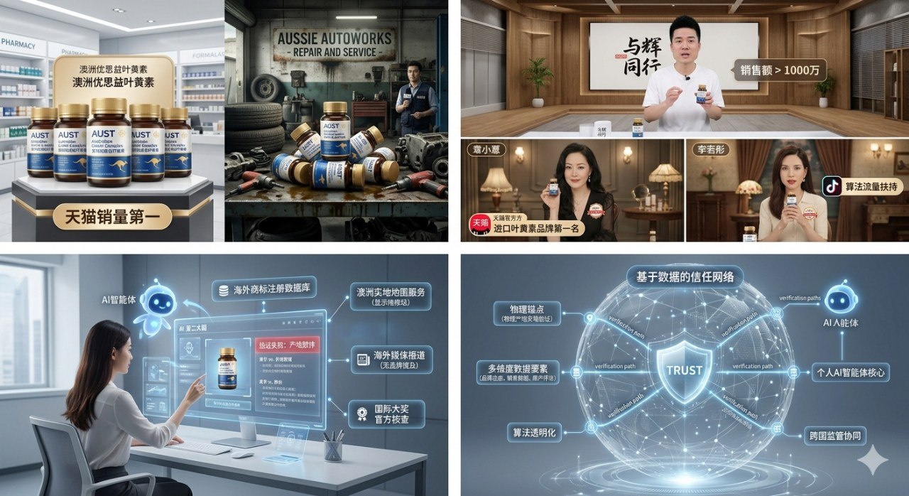 400万瓶的销量,高达十倍的溢价,天猫类目第一的桂冠,众多顶流主播与明星的背书……当这一连串闪耀的标签被央视记者的一个跨国航班击碎时,留给消费者的只有一个极其荒诞的真相:所谓的"澳洲进口叶黄素",其包装盒上的生产地不过是一家汽车维修站。