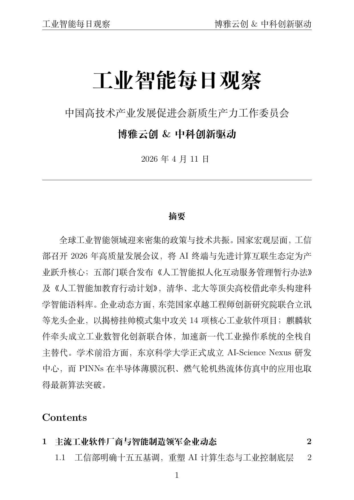 4月10日,国家网信办、工信部等五部门联合公布《人工智能拟人化互动服务管理暂行办法》,将于2026年7月15日施行。在工业应用层面,这为工业元宇宙中的数字人、工厂运维AI巡检助手以及带有拟人化交互能力的PLM系统确立了安全红线。新规坚持包容审慎,鼓励工业数据要素在安全可控前提下向AI训练语料转化。