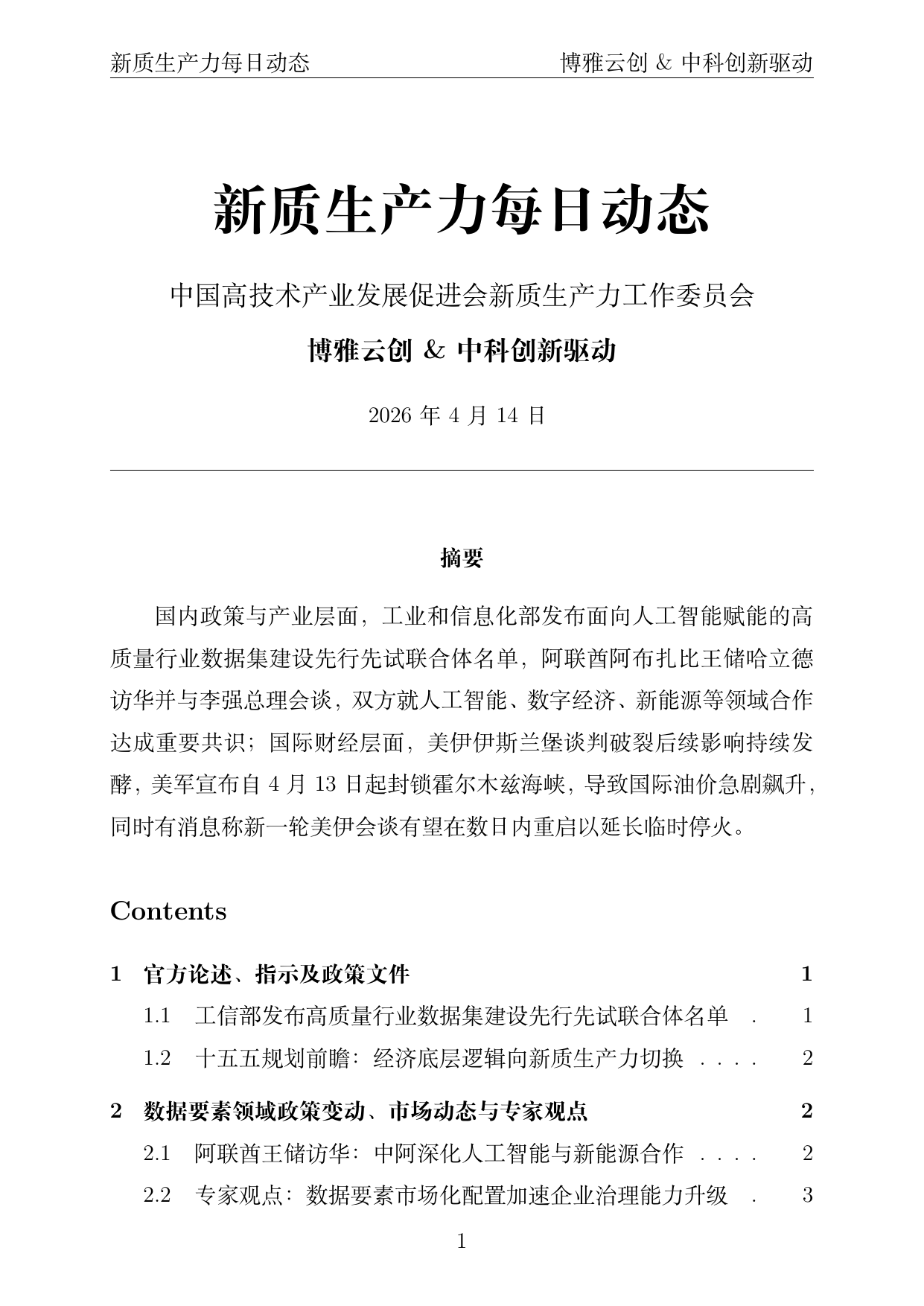 2026年4月13日,工业和信息化部办公厅正式发布《关于公布面向人工智能赋能的高质量行业数据集建设先行先试联合体名单的通知》。该名单涵盖了多地面向人工智能赋能的高质量行业数据集建设先行先试联合体,标志着我国工业数据要素市场化配置进入新阶段。
