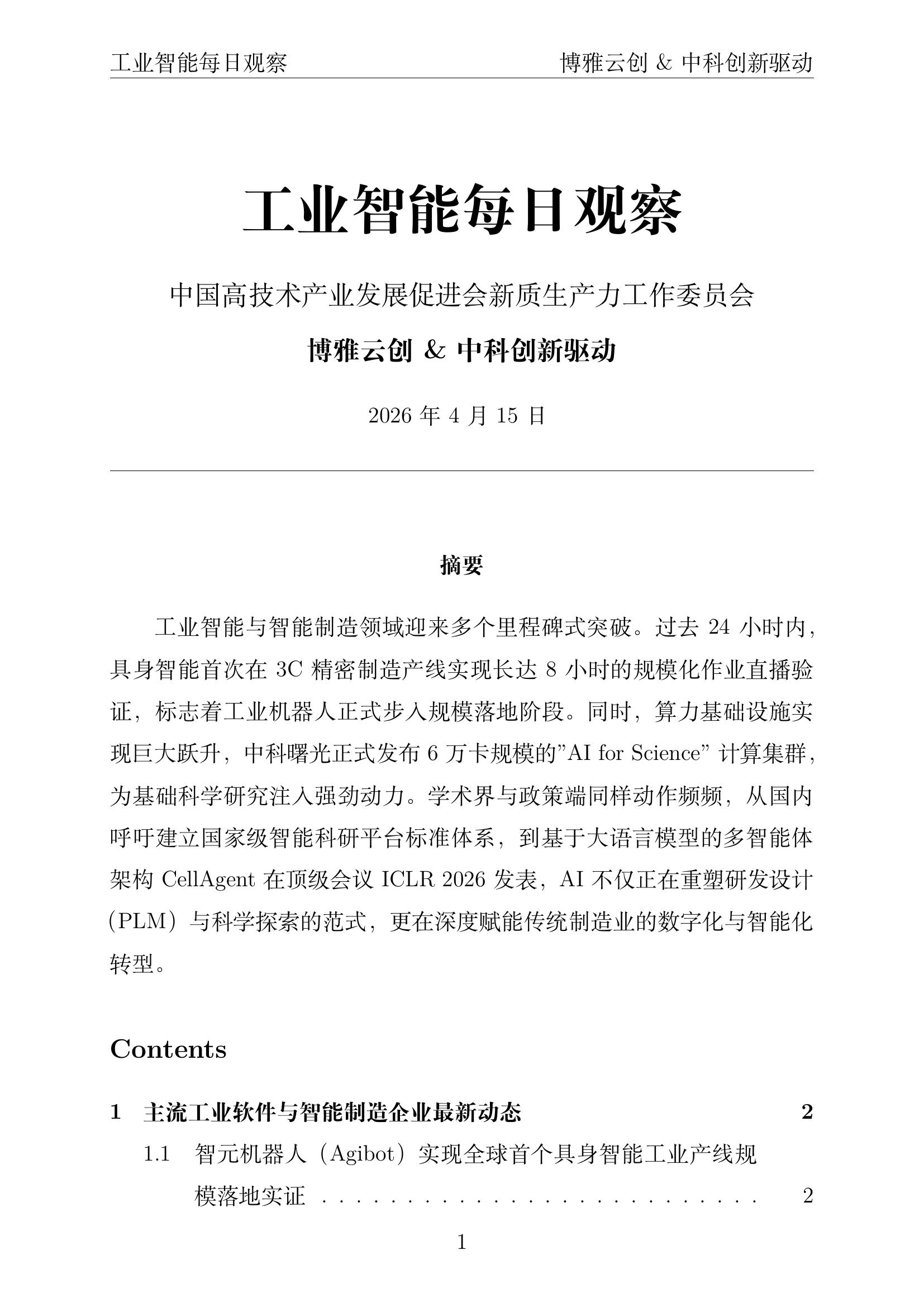 过去24小时的全球与本土动态展现了一条极其清晰的产业主线:工业智能正在全面摆脱"概念期",快速进入"重载与规模化落地期"。无论是在真实产线连续高强度组装作业的具身机器人,还是支撑底层计算的6万卡超大集群,都表明"AI+制造"与"AI+科研"的硬核基础设施已经就位。短期内,打通数据孤岛、建立行业通用标准的呼声日益高涨,围绕垂直工业大模型的生态互通,必将成为2026年下半场行业最大的破局点与增量场。