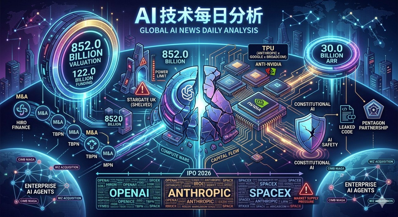 目前,市场正在消化三家超级独角兽在2026年挂牌上市的预期:估值2万亿美元的SpaceX(近期与xAI整合)、估值8520亿美元的OpenAI,以及估值3800亿美元的Anthropic。如果这三家企业在短时间内集中上市且不设锁定期(Lock-up periods),将对全球股票市场的流动性造成极大的"抽血"效应。这一宏观预期正在深刻影响当前加密货币(如比特币对冲)以及传统科技股的资金博弈策略。