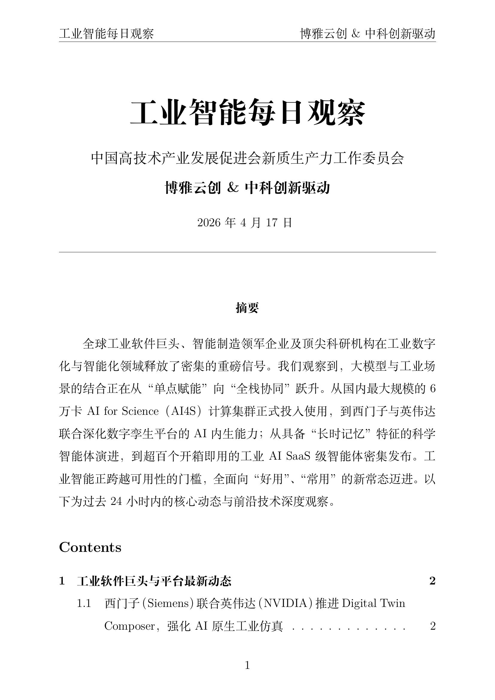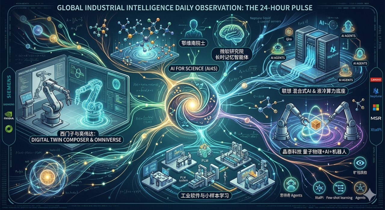 综上所述,过去24小时的核心技术脉络表明,工业智能已经度过了早期的“概念验证(PoC)”期。底层有6万卡级别的超大型专属算力集群支撑,中间层有西门子与英伟达联合打造的强大数字孪生可视化及仿真平台,应用层则涌现出170+开箱即用的特定业务智能体和具备“长时记忆”的科研助手。生成式AI与传统物理仿真引擎(AI+Simulation)、产品全生命周期管理(AI+PLM)的融合正变得前所未有的紧密。