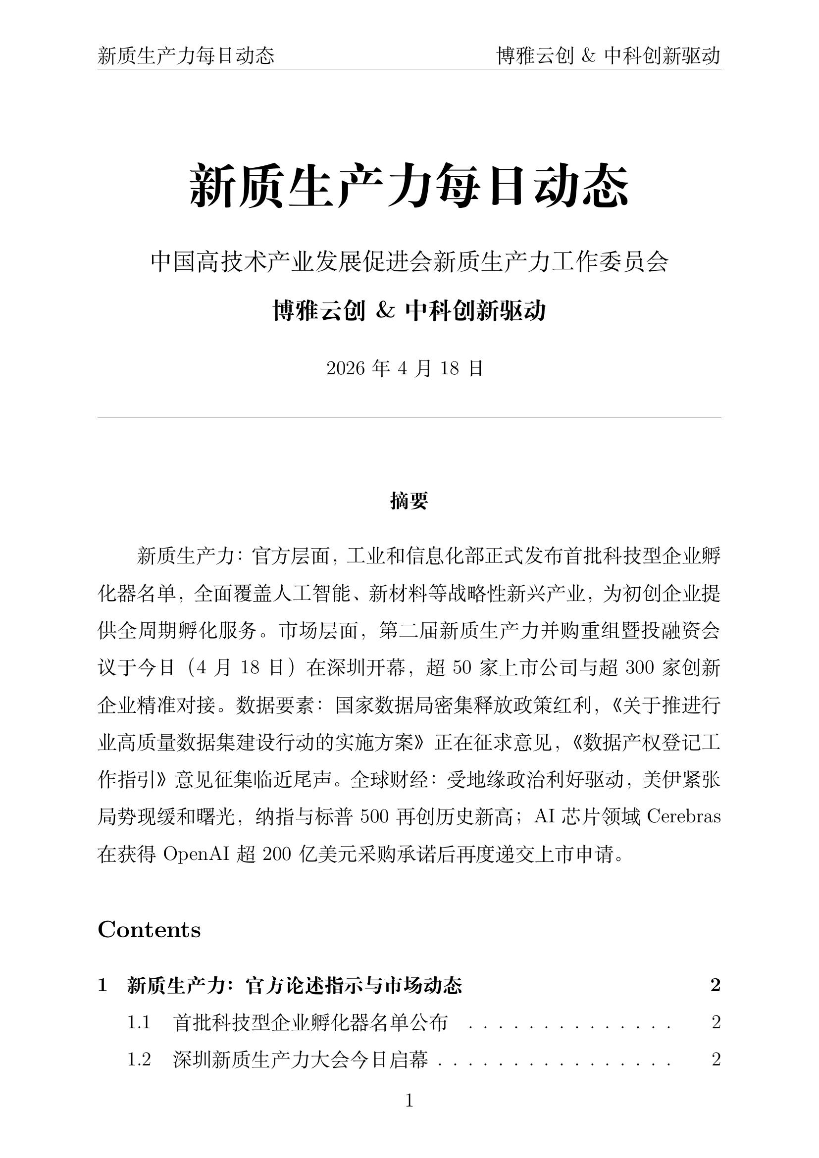 1. 东方财富/界面新闻 (2026-04-17). 首批孵化器名单公布,新质生产力产业受关注