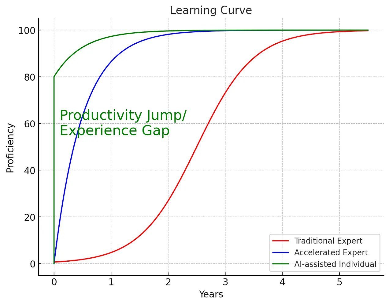 在实际案例中,这一壁垒显露无遗。LinkedIn上的一篇帖子讨论AI如何放大工程师差距:高手成为"100x工程师",通过多线程提示和系统直觉,而新手停留在2x提升。Medium文章《The AI Productivity Divide》强调,差距源于"经验+AI"的乘法效应:高手不只是用AI写代码,而是设计整个架构。这要求转变教育范式,从技能培训转向思维训练。