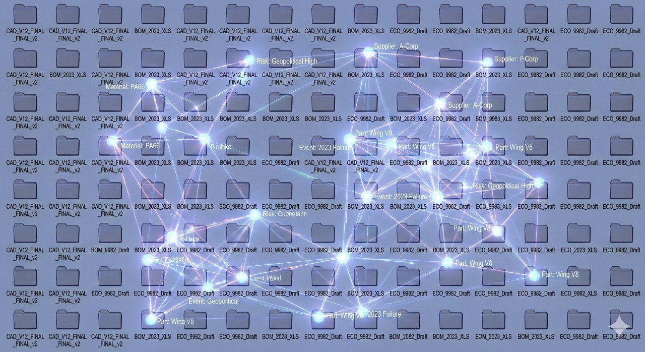 过去的 PLM,骨子里是"Excel 思维"。数据整整齐齐地躺在关系型数据库的表格里,行是行,列是列。物料表和供应商表是隔离的,设计变更表和测试结果表也是"老死不相往来"。要建立联系,需要人脑去拼凑。