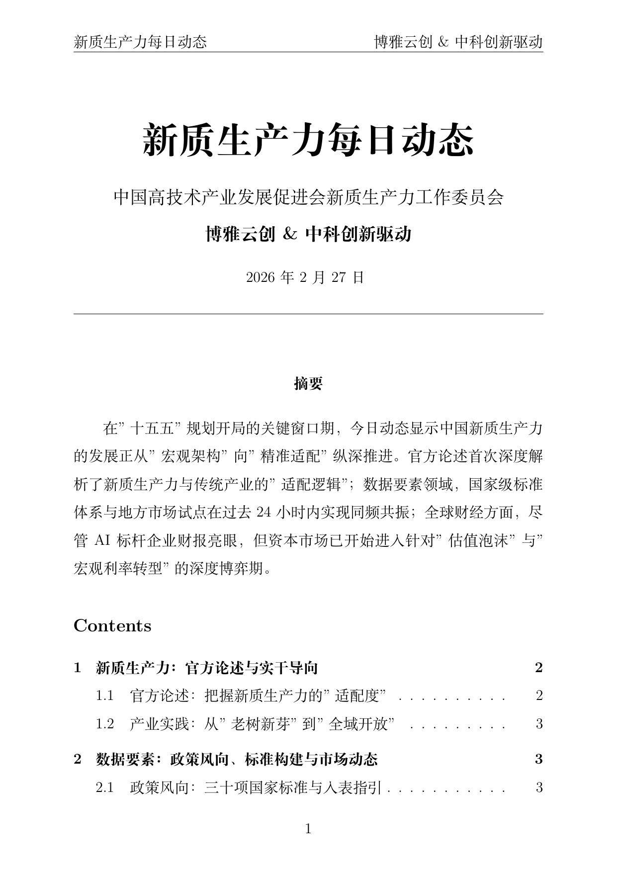 摘要:在"十五五"规划开局的关键窗口期,今日动态显示中国新质生产力的发展正从"宏观架构"向"精准适配"纵深推进。官方论述首次深度解析了新质生产力与传统产业的"适配逻辑";数据要素领域,国家级标准体系与地方市场试点在过去24小时内实现同频共振;全球财经方面,尽管AI标杆企业财报亮眼,但资本市场已开始进入针对"估值泡沫"与"宏观利率转型"的深度博弈期。