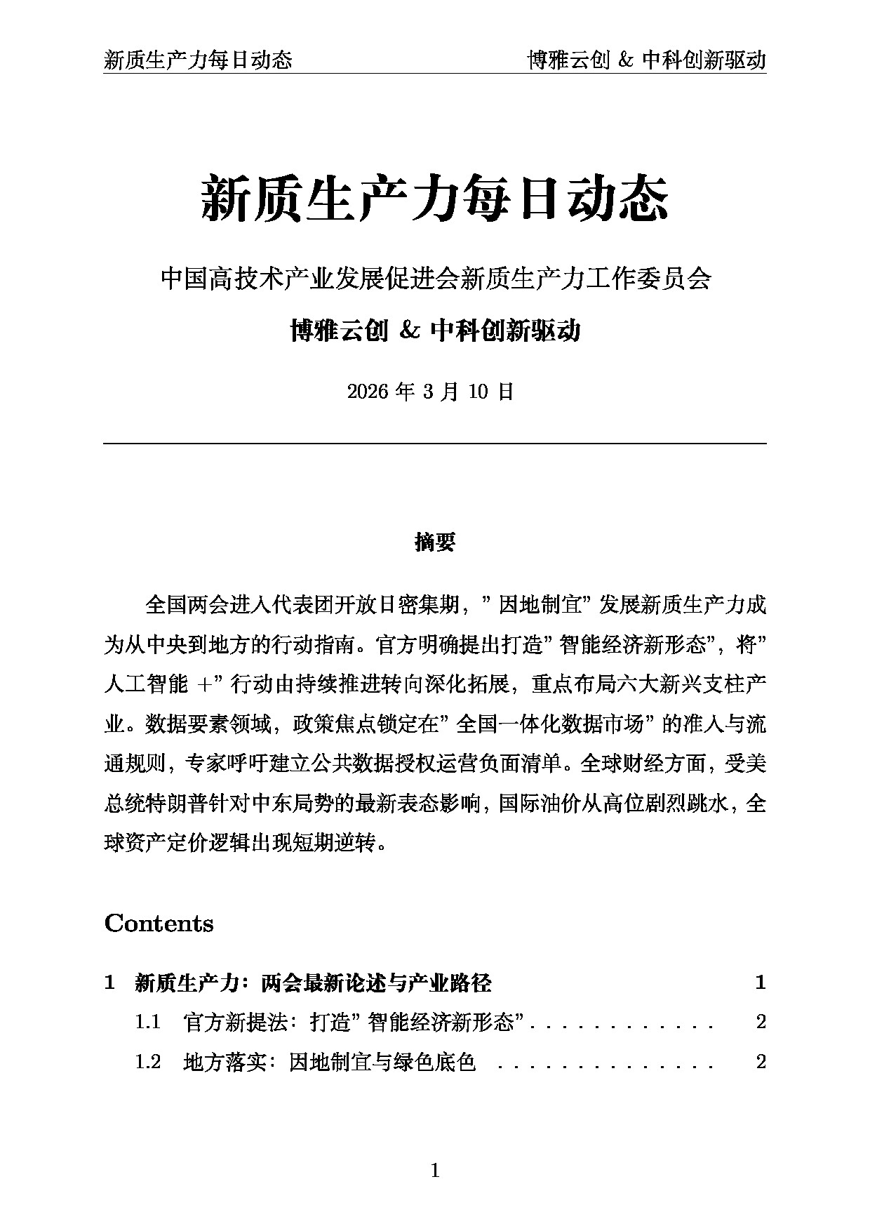 中国高技术产业发展促进会新质生产力工作委员会 | 2026年3月10日