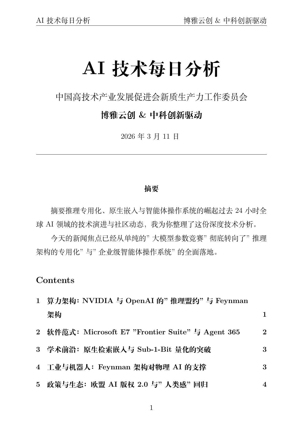 今天的新闻焦点已经从单纯的"大模型参数竞赛"彻底转向了"推理架构的专用化"与"企业级智能体操作系统"的全面落地。