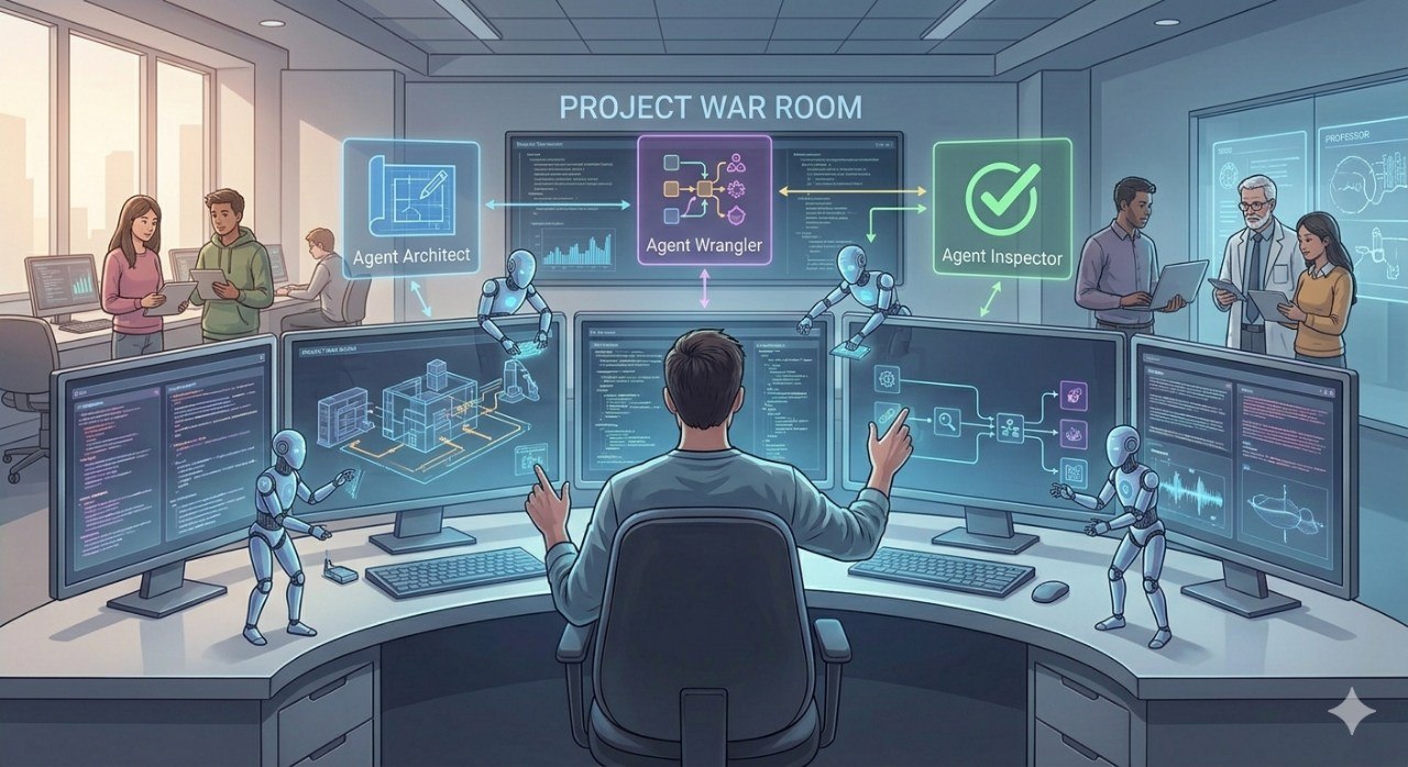 在装备制造、工业自动化等专业,学生日常的训练将不再是单打独斗。课堂将模拟真实的工作流:学生需要同时调动负责数据清洗的 Agent、负责 CAD 建模的 Agent 和负责物理仿真的 Agent。学生不仅要懂技术,还要懂得如何像一个"牧羊人"一样,协调这些数字员工的工作。 -