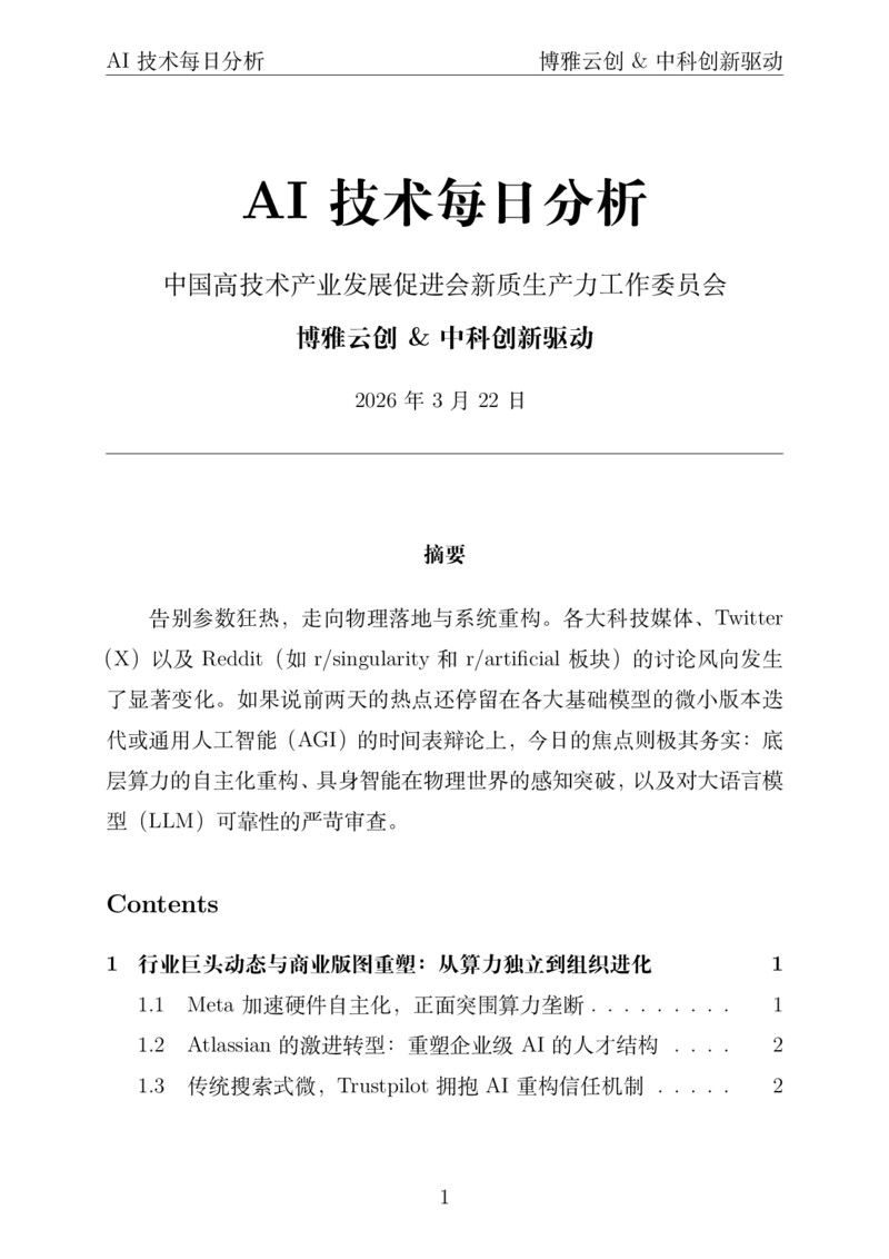 过去24小时的动态清晰地传达了一个信号:AI行业的重心正在从"模型参数竞赛"下沉至"商业落地与物理交互"。 无论是Meta与Atlassian在硬件和组织层面的底层架构重塑,还是具身智能在复杂物理环境中的认知突破,都表明AI技术正在脱虚向实。建立更严苛的终极评测基准和幻觉拦截机制,将是未来几个月内决定大模型能否顺利进入高价值企业级工作流的关键战役。