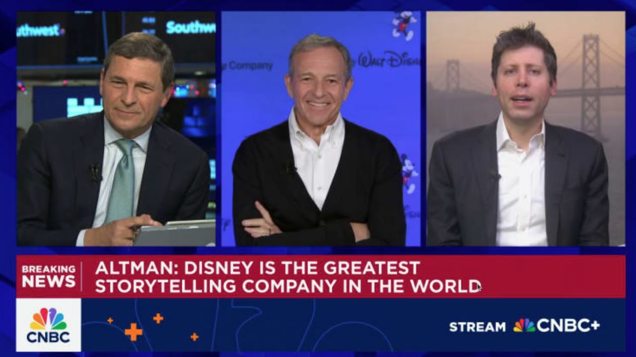而艾格看到了另一面。2025年12月,他和OpenAI CEO Sam Altman并肩亮相,宣布那笔轰动业界的合作:迪士尼投资OpenAI 10亿美元(股权形式),授权200多个经典角色——米奇、爱丽丝、钢铁侠、达斯·维德等——供Sora用户生成短视频。同时,双方计划将AI内容导入Disney+垂直视频流,甚至探索ChatGPT在公司内部的应用。Iger在CNBC采访中说:"AI的快速发展是我们行业的重要时刻,通过与OpenAI的合作,我们将负责任地扩展故事讲述,同时尊重创作者和他们的作品。“Altman则称迪士尼是"世界上最伟大的讲故事公司”。