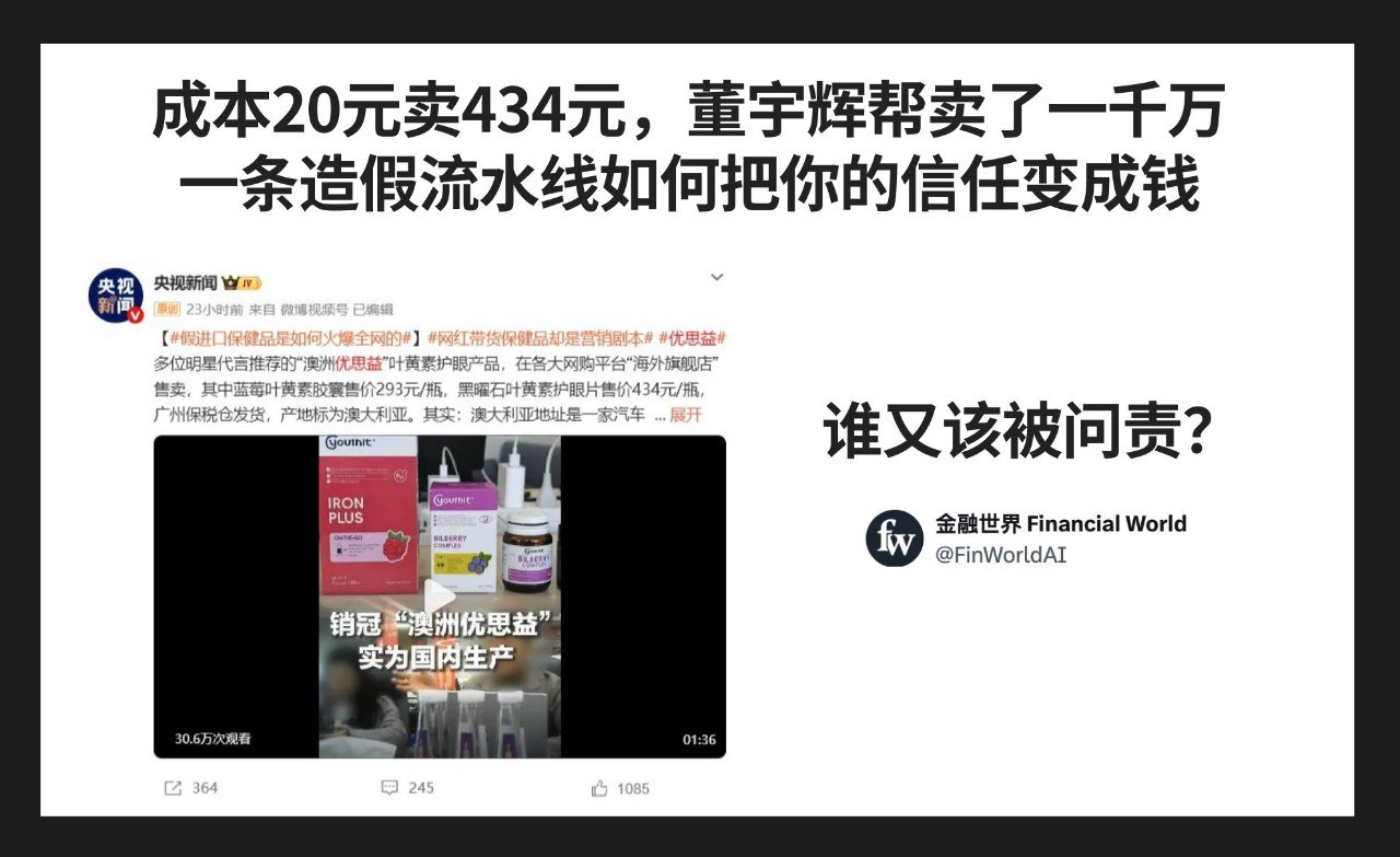 在这条精密的流水线上,信任成了被明码标价甚至被随意透支的消耗品。消费者以为自己在为健康买单,实际上却是在为一条由资本、流量和算法共谋的"信息差产业链"买单。
