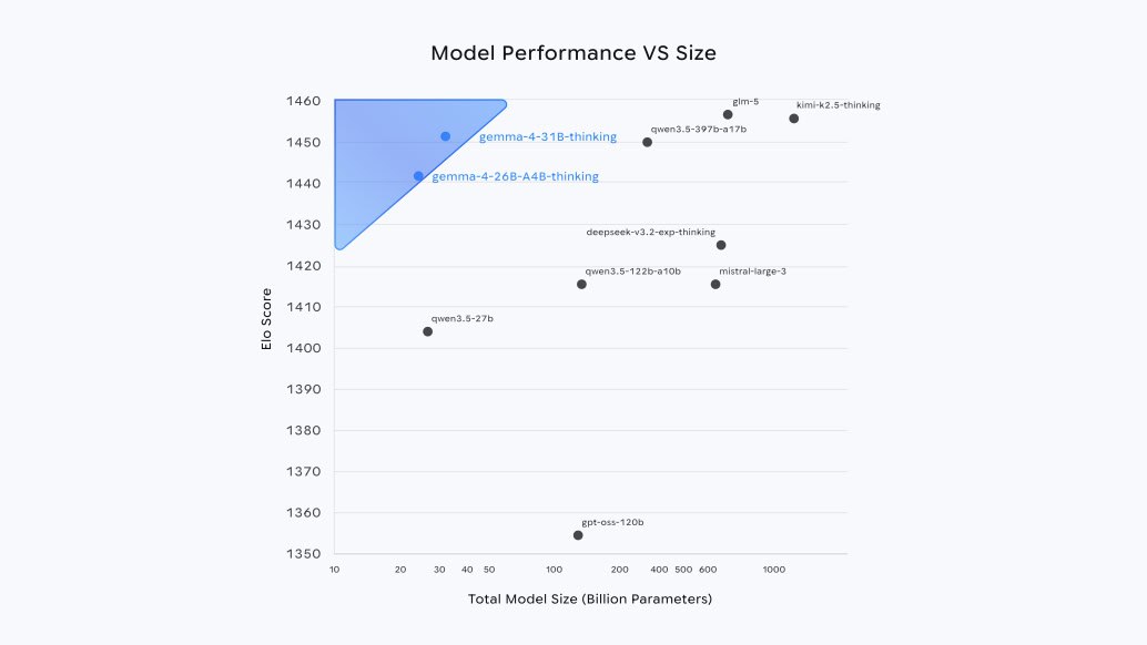 - Arena AI(文本):31B达1452,26B达1441,远超Gemma 3 27B的1365。