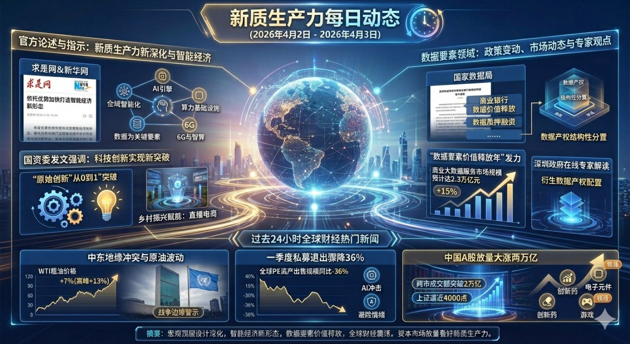 动态内容:2026年4月2日,《求是》网与新华网同步刊发重要论述,明确提出"智能经济新形态"是发展新质生产力的重要载体和推动高质量发展的重要引擎。文章指出,智能经济具有"全域智能化"的基本特征,是以人工智能为重要引擎、以数据为关键生产要素、以算力为新型基础设施的新经济形态。未来政策导向将着重推进算网融合,降低全社会用算成本,让算力像水和电一样便捷使用,同时前瞻布局6G与智算等新型信息基础设施 [1]。