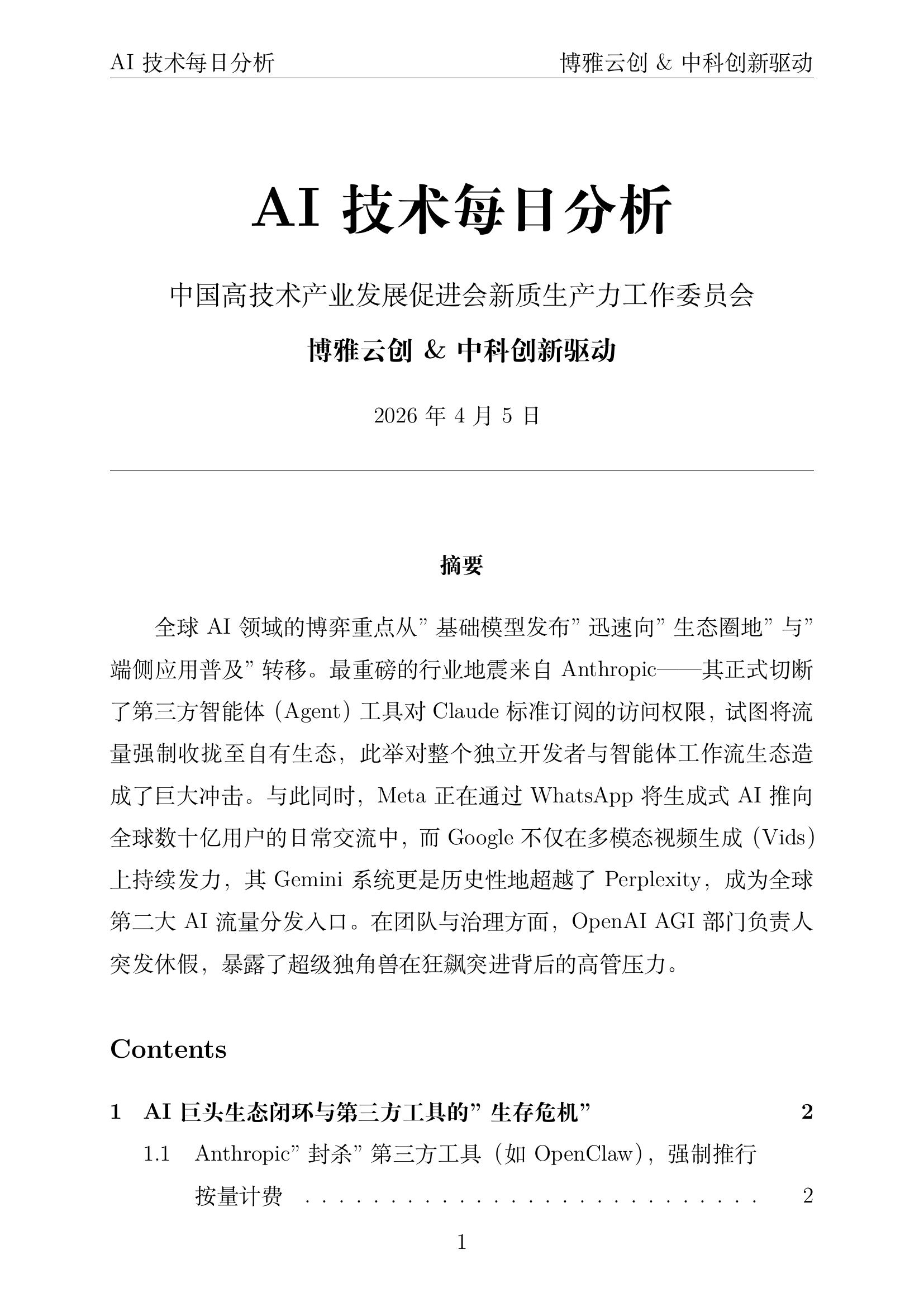 这无疑是过去24小时内AI开发者和重度用户圈层中最具争议的事件。当地时间4月4日,Anthropic正式开始阻止包括OpenClaw("龙虾")在内的第三方接入工具访问Claude的订阅服务。这意味着,对于那些习惯使用AI智能体平台搭建自动化工作流(例如进行高频的新闻聚合、文章智能编辑、全网信息实时检索与结构化处理)的用户而言,他们必须放弃固定成本的月度订阅套餐,转向按Token计费的API模式。