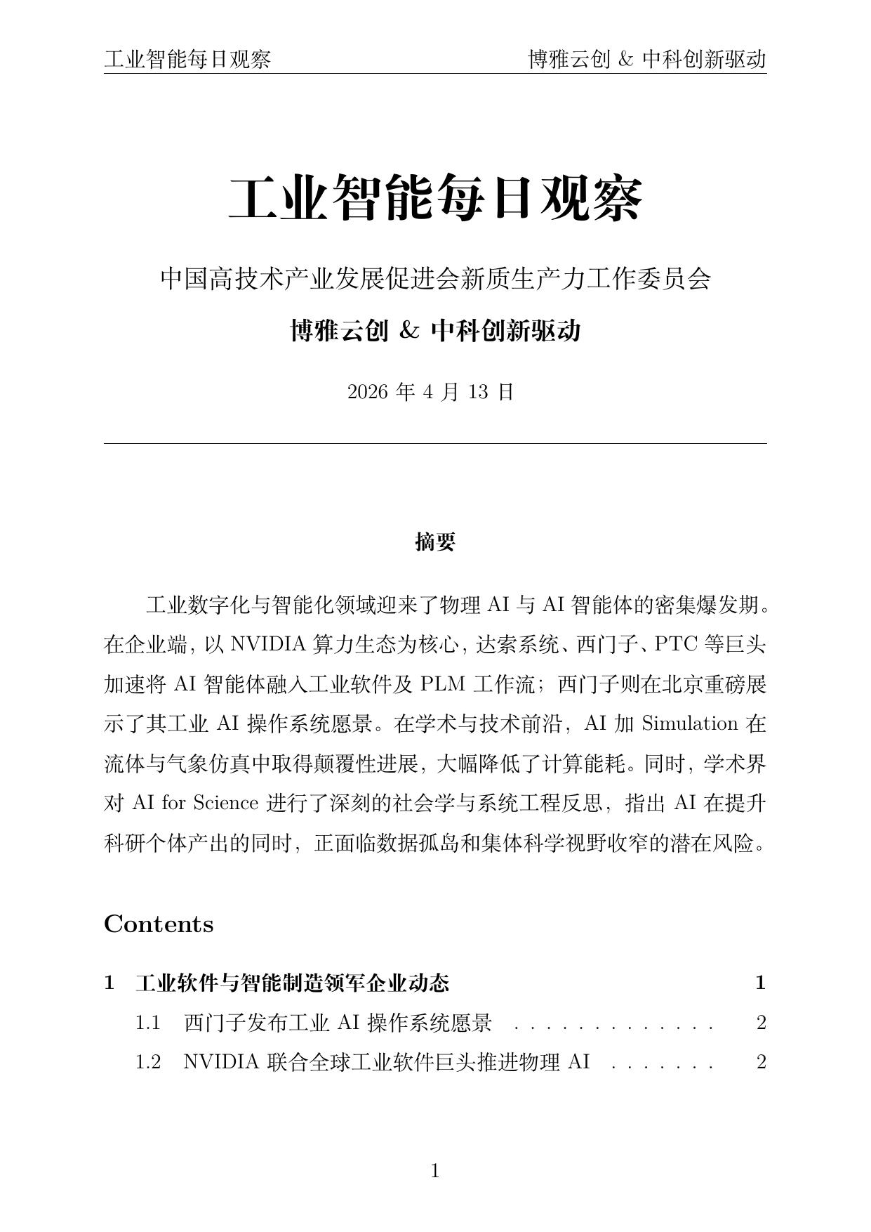 过去24小时内,全球主要工业软件厂商的焦点高度集中于将生成式AI与物理系统相结合,推动制造业从数字化向真正的智能化迈进。