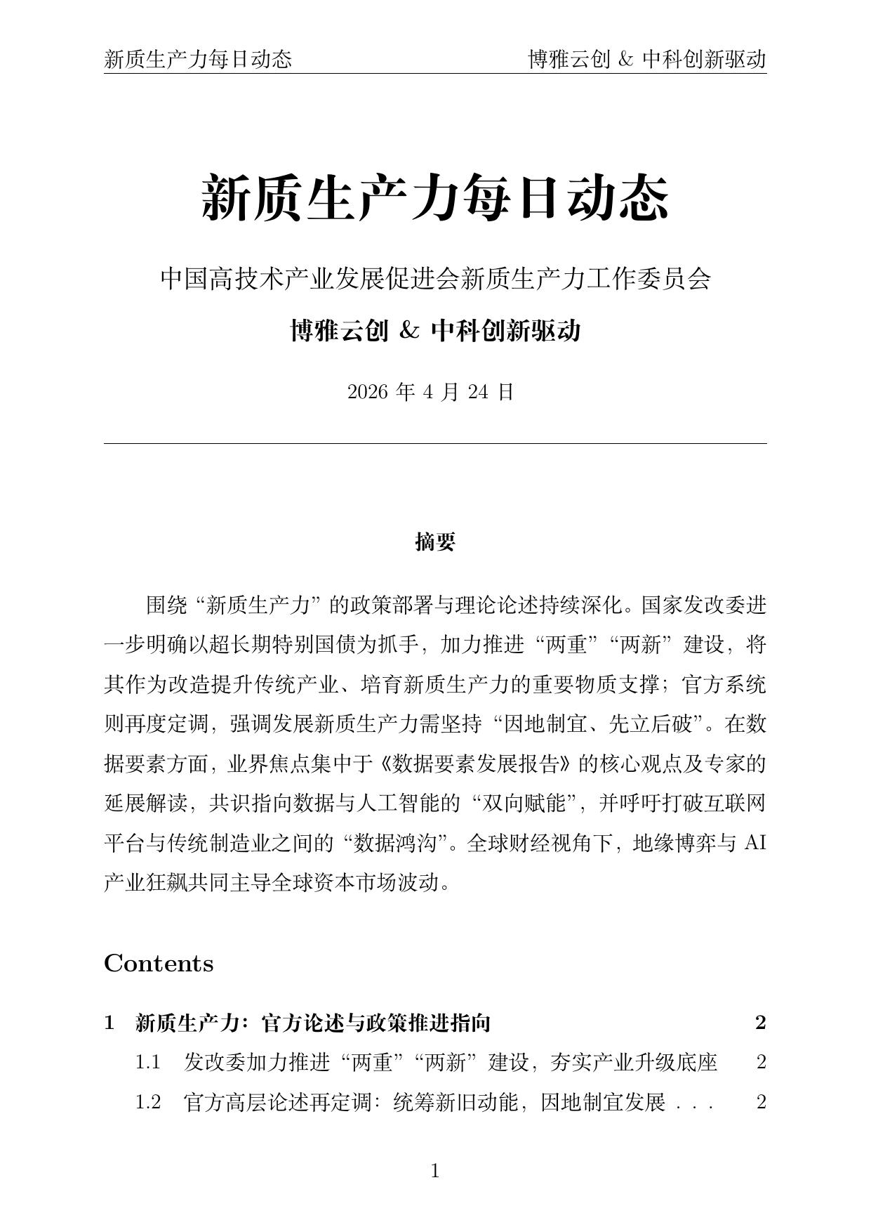 1. 国家发改委 / 北京市人民政府门户网站:《新质生产力发展呈现“四个加快”——国家发改委谈扎实推进高质量发展情况》