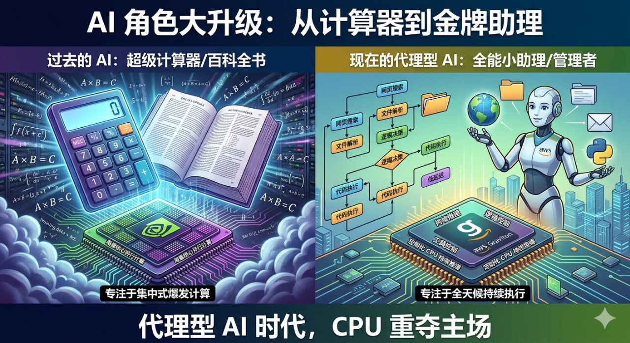 摘要:当大模型从“超级计算器”进化成会调工具、读文件、跑代码的代理型 AI,算力需求的重点也在悄悄变化。GPU 仍然是训练时代的霸主,但在持续执行、低延迟逻辑处理和能效成本都更重要的 AI 执行时代,CPU 正重新成为底层基础设施的核心角色。